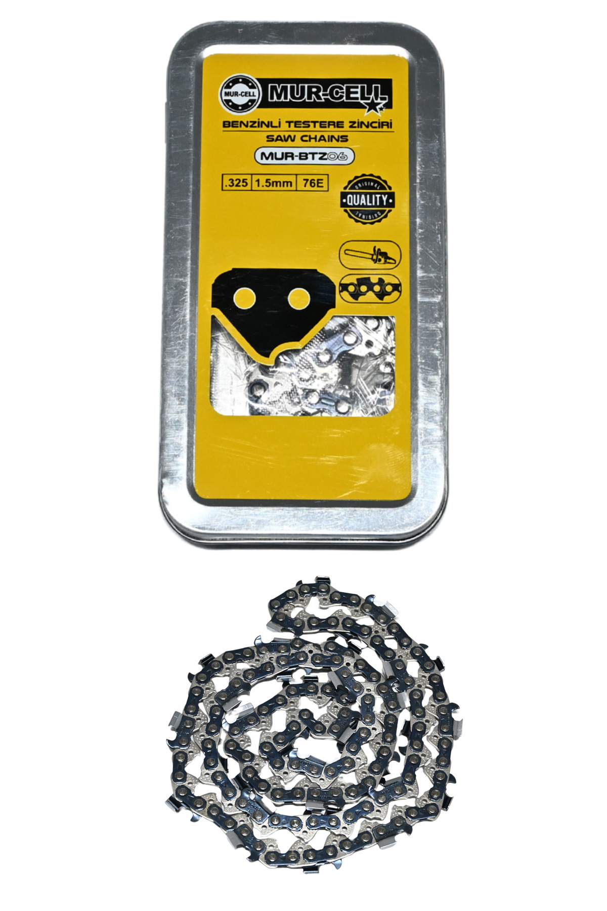 - Yüksek kalite standartlarına uygun olarak üretilmiş, 3/8 inç çapında ve 1.5 mm diş genişliğindeki bu zincir, dayanıklılığı ve uzun ömürlü kullanımı ile dikkat çeker.; - Çin menşeli olup, kalitesinden emin olduğunuz bir ürün arayışınızda size güvenilir bir seçenek sunar.; - CE uygunluk sembolü ile belgelendirilmiş olup, güvenlik ve kalite standartlarına tamamen uyumlu olduğunu gösterir.; - Bakım talimatlarına göre, nemli bir bez kullanarak kolayca temizlenebilir; böylece zinciriniz her zaman yeni gibi kalır.; - İthalatçı firma İTHALAT tarafından desteklenen bu ürün, yetkili temsilcisi aracılığıyla da satın alınabilir veya servis hizmetleri sağlanabilir.