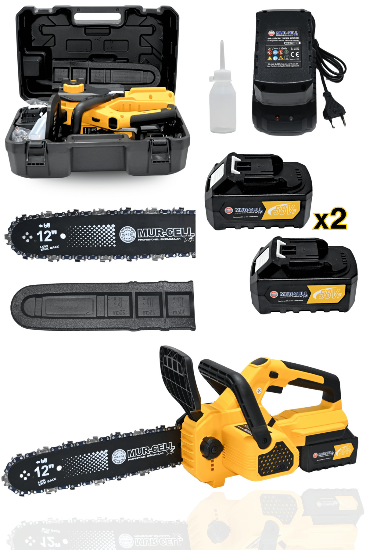 - Yüksek performanslı 21V 4 Amper kömürsüz motor ile donatılmış, uzun süreli kullanım için ideal.; - 20-24 cm arasında değişen pala boyu sayesinde çeşitli ağaç türleri üzerinde etkili kesim imkanı sunar.; - Güçlü 20 watt motor gücüyle zorlu odun kesme işlemlerini kolayca gerçekleştirir.; - Çift akülü tasarımı ve 10 pil kapasitesi ile kesintisiz çalışma süresi sağlar; böylece her zaman hazır olursunuz.; - 22 dişli zinciri sayesinde daha pürüzsüz ve temiz bir kesim elde edersiniz.; - Nemli bir bez kullanarak düzenli bakım yaparak testerenizin ömrünü uzatabilirsiniz.; - CE uygunluk sembolü bulunan bu ürün, güvenlik standartlarına tam uyum gösterir.; - Hafifliğiyle dikkat çeken 1,5 - 3 kg arası ağırlığıyla taşıması kolaydır.; - Akülü tipi sayesinde kablo karmaşasına son vererek pratik kullanım imkanı tanır.
